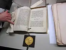 Finalement le jour de Noël, le 25 décembre 1356, durant un splendide banquet sur le Champ-à-Seille, actuellement la place Coislin à Metz[7], cette loi de la Bulle d’or fut officiellement et solennellement proclamé par l’empereur Charles IV. Le texte entra de suite en vigueur et le déroulement cérémoniel, tel que stipulé dans ce document, fut pratiqué pour la première fois sur place[8].