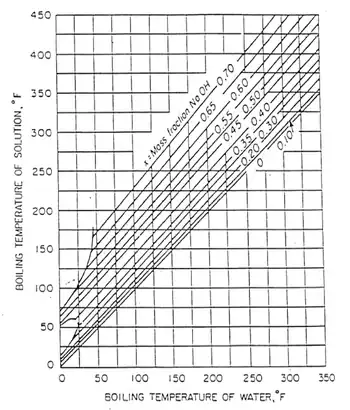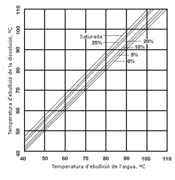 À pression atmosphérique (101 325 Pa) l'eau bout à 100 °C ; selon la figure 1 la saumure saturée ayant la même pression de vapeur bout à environ 110 °C, celle à 20 % bout à environ 107 °C. Réciproquement, une saumure à 20 % bouillant à environ 65 °C a la même pression de vapeur que l'eau pure à 60 °C, soit 19 947,476 Pa[4].