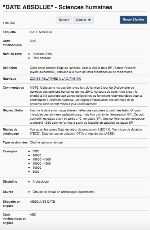 - « Le Dictionnaire de données des sciences naturelles d’Artefacts Canada »