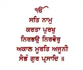 La Mul Mantra, qui marque le débute du Livre saint du sikhisme, le Guru Granth Sahib, énumère en une formule les attributs de la Divinité[134]. Cette prière commence ainsi : « Une, Énergie créatrice, Manifestée, Vérité est son nom… »[135].