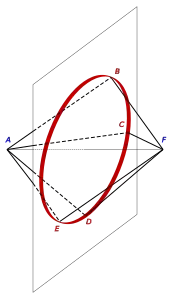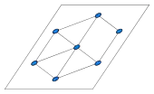 La dimension d'un graphe biparti complet , pour , vaut 3 : sur la figure, on voit comment placer sommets sur un même cercle et les 2 sommets restants sur l'axe de ce cercle. peut quant à lui se tracer avec un losange dans un plan.