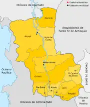 Le 22 novembre 2003, il récupère les municipalités de Murindó et de Vigía del Fuerte qui appartenaient à l'archidiocèse de Santa Fe de Antioquia[10].