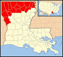 Le diocèse comprend seize paroisses civiles de la partie septentrionale et nord-occidentale de la Louisiane : Bienville, Bossier, Caddo, Claiborne, De Soto, East Carroll, Jackson, Lincoln, Morehouse, Ouachita, Red River, Richland, Sabine, Union, Webster et West Carroll.