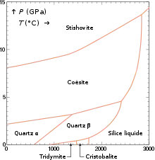 Minéraux des hautes températures, la cristobalite et la tridymite ont une masse volumique et un indice de réfraction inférieurs à ceux du quartz α. En revanche, la seifertite, la stishovite et la coésite, qui sont des minéraux des hautes pressions, ont une masse volumique et un indice de réfraction supérieurs à ceux du quartz α[18].