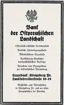 - Frühe Dokumente und Zeitungsartikel zur Bank der Ostpreußischen Landschaft zu Königsberg i.Pr.