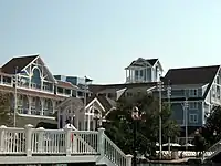 Les deux hôtels de cinq étages sont reliés par un bâtiment hébergeant les restaurants et boutiques. Derrière cette jonction un centre de congrès a été construit au-dessus d'un canal délimitant au nord le complexe et le séparant des parkings. Au sud le complexe donne sur le Crescent Lake et fait face au Disney's BoardWalk. Tout l'ensemble (de même que le BoardWalk) est l'œuvre de l'architecte Robert AM Stern.