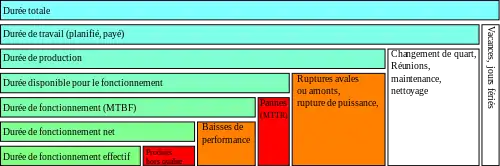 - Soit une machine que l'on souhaite utiliser 12 heures par jour, mais qui tombe en panne en moyenne pendant 1 heure chaque jour et a besoin d'une demi-heure de réglages divers pour sa remise en fonctionnement. Sa disponibilité est :