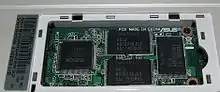 À mi-chemin entre le disque dur et le SSD, les disques durs hybrides (SSHD) sont des disques magnétiques classiques accompagnés d'un petit module de mémoire flash (8 à 64 Go selon le fabricant[50]) et d'une mémoire cache (8 à 64 Mo selon le fabricant[50]).