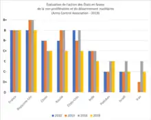 - (en) Alicia Sanders-Zakre & Kelsey Davenport, « Assessing Progress on Nuclear Nonproliferation and Disarmament: 2016-2019 Report Card », sur Arms Control Association (en), .