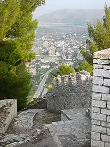 Vue depuis le château de Berat sur la vallée de la rivière Osum