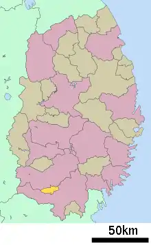 - (en) Cet article est partiellement ou en totalité issu de l’article de Wikipédia en anglais intitulé « Nishiiwai district, Iwate » (voir la liste des auteurs).