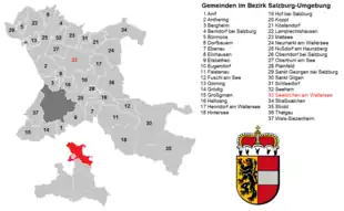 Localisation du district de Salzbourg-Umgebung dans le Land autrichien de Salzbourg. | |