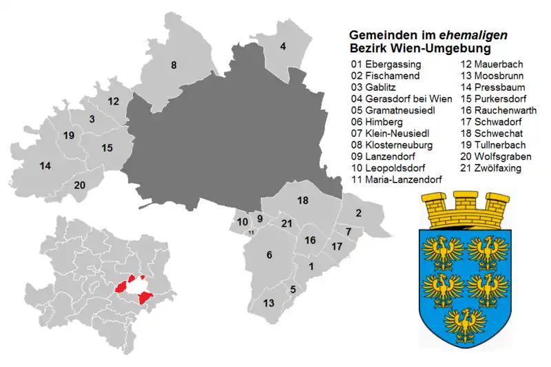 Le district de Wien-Umgebung était composé de 21 communes :