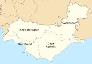 | Cape Agulhas[4] | Bredasdorp | 33 038 | 3 467 | 9,5 |