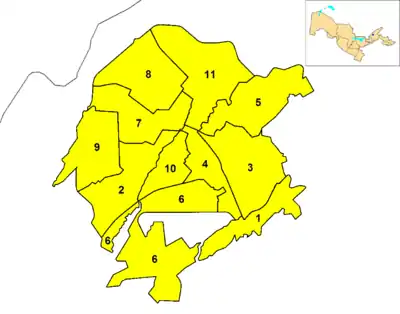 | 9 | Uchtepa | 237 000 | 28,2 | 8404 | |