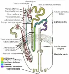 - Les diurétiques thiazidiques, qui agissent au niveau du tube contourné distal ;