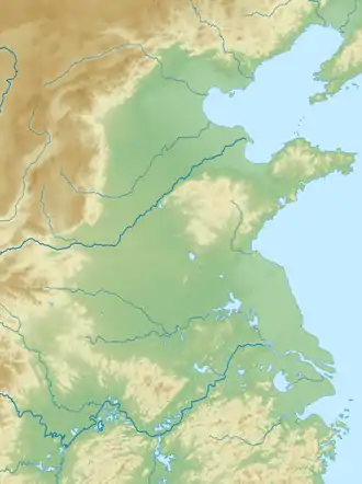 En 1194, le fleuve Jaune rompt ses digues au niveau de Zhengzhou et suit un cours plus au sud, se dirigeant vers Dongping dans le Shandong, mais se divise en deux branches au pied de ce relief. La branche sud contourne la péninsule du Shandong vers le sud-est et se jette dans la mer Jaune au niveau de la ville de Huaian. La branche nord continuait à couler dans son ancien lit, mais à partir de 1208, les deux branches convergent dans le lit sud, et l'estuaire du fleuve Jaune passe entièrement au sud de la péninsule du Shandong[2].
