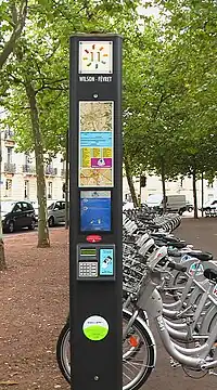 Station DiviaVélodi de l'ancienne génération (2008-2017) sur la place Darcy. | ||