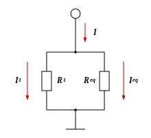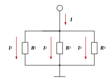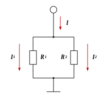 Soit un nœud simple et deux branches dont les résistances et . On peut montrer que, si on note respectivement et les conductances des deux branches (), alors l'intensité du courant dans la branche 1 est donnée par :