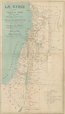Sous l'empire turc ottoman, la Palestine ne constituait pas une entité administrative, mais était répartie en trois districts ou sandjaks : Jérusalem rattachée au gouvernement central d'Istanboul, Acre rattachée à Sidon puis Beyrouth, et Naplouse rattachée à Damas puis Beyrouth.