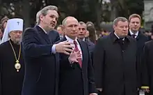 En 2017, au second plan à droite, avec V. Poutine révélant un monument à Alexandre III à Yalta.