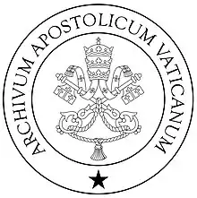Sceau des Archives apostoliques du Vatican depuis 2019. Ce sont dans ces archives que sont conservés les documents du Vatican