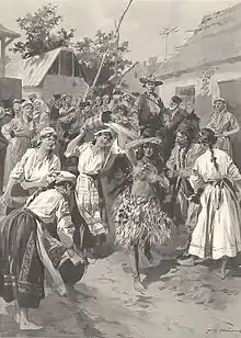 - Paparudă (ro) (ou Perperuna, Peperdua, Paparuna, Piperia), danse rituelle de la pluie, pour laquelle de jeunes filles se déguisent