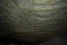 La partie supérieure de la strate exploitée est, par endroits, constituée d'empreintes de rides de plage formées sur le fond marin de l'époque[3]. On peut observer leur « contre-empreinte fossilisée » au niveau de certains plafonds. Elles ont permis d'estimer la profondeur de la mer (de quelques centimètres à 2 mètres) et l'orientation de la plage (sud - sud-est) à l'époque de leur formation[3].