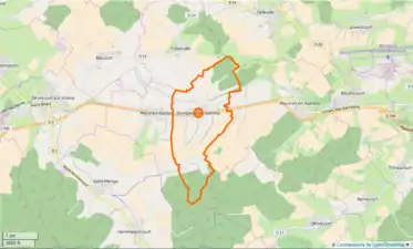 L'occupation des sols de la commune, telle qu'elle ressort de la base de données européenne d’occupation biophysique des sols Corine Land Cover (CLC), est marquée par l'importance des territoires agricoles (70,9 % en 2018), néanmoins en diminution par rapport à 1990 (78,2 %). La répartition détaillée en 2018 est la suivante : prairies (40,1 %), terres arables (30,8 %), forêts (21,9 %), zones urbanisées (7,3 %)[15]. L'évolution de l’occupation des sols de la commune et de ses infrastructures peut être observée sur les différentes représentations cartographiques du territoire : la carte de Cassini (XVIIIe siècle), la carte d'état-major (1820-1866) et les cartes ou photos aériennes de l'IGN pour la période actuelle (1950 à aujourd'hui)[Carte 3].