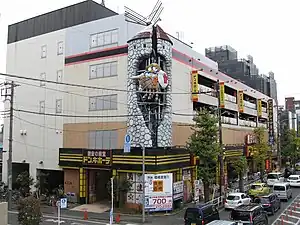 Don Quijote (ドン・キホーテ, Don Kihōte) est une chaîne de magasins à bas prix qui gère plus de 160 établissements au Japon, 3 à Hawaï et 2 à Singapour (sous le nom de Don Don Donki)[3]. Elle vend une large gamme de produits, de l'épicerie de base à l'électronique et aux vêtements. L'enseigne est très connue au Japon et est souvent désignée sous le nom abrégé de Donki (ドンキ). Elle a tendance à rester ouverte très tard (jusqu'à 3 à 5h du matin, voire 24 heures sur 24). Son logo représente un pingouin.