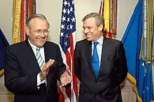 Donald Henry Rumsfeld, né le à Evanston (Illinois) et mort le à Taos (Nouveau-Mexique), est un homme d'affaires et homme politique américain, membre du Parti républicain. Il est secrétaire à la Défense entre 1975 et 1977 dans l'administration du président Gerald Ford puis entre 2001 et 2006 dans l'administration du président George W. Bush.
