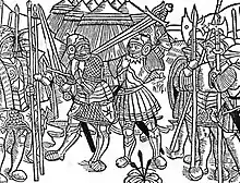 Doolin de Maience, gravure du livre La Fleur des batailles Doolin de Mayence, 1501.