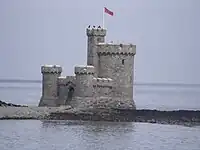 Conçue par John Welch, la tour du Refuge[6] (Tower of Refuge) est achevée en 1832. Elle se situe sur le roc de Conister (aussi appelé île de Sainte-Marie (en)), dans la baie de Douglas, et présente l'aspect d'un petit château médiéval en granit. Sir Hillary finança une grande partie de l'ouvrage, tandis qu'une souscription publique acheva de récolter le restant de la somme nécessaire. Cette tour a pour but d'offrir un abri par mauvais temps et/ou mer forte. Elle contient une réserve permanente de pain et d'eau fraîche. Elle est la propriété de la RNLI dont le drapeau flotte au sommet de la tour principale.