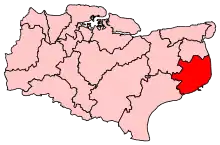 Localisation de la circonscription de Dover au sein du Kent.