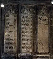 Panneaux inscrits à la cathédrale de Cantorbéry, répertoriant les doyens