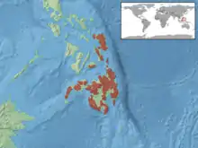 Cette espèce est endémique des Philippines[1]. Elle se rencontre entre 200 et 800 m d'altitude à Bohol, à Leyte, à Samar, à Mindanao et à Dinagat[2].