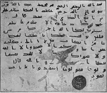 La seconde partie de cette profession de foi est indiquée sous la forme du sceau de Mahomet (en). Sur ce sceau est tout d'abord indiqué الله (Allah, « Dieu ») puis رسول (rasoul, « prophète ») et محمد (Muhammad, « Mahomet »)[1]. En 2007, les représentants de l'État islamique d'Irak ont spécifié dans un communiqué de quelle manière devait être lu le sceau. Il ne faut pas le lire de haut en bas, ce qui signifierait « Allah, le prophète de Muhammad », mais de bas en haut, soit « Muhammad le prophète d’Allah ». La position du nom d'Allah en tête du sceau symbolise sa toute-puissance[2].
