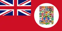 L'année suivante, en 1901, une proposition fut faite par un canadien écrivant à la St James's Gazette (en). Depuis la Confédération, le Canada utilisait les armoiries en quartiers de ses provinces fondatrices comme insigne national à utiliser sur les drapeaux[26]. Il a été observé que l'entrée du Manitoba dans la fédération avait pour résultat que ses armes étaient ajoutées à l'insigne par les fabricants de drapeaux à travers le pays. L'article spéculait que la fédération de l'Australie aboutirait à la conception d'un drapeau similaire avec les armoiries de ses États et qu'une « évolution ininterrompue » d'emblèmes uniques provenant de toutes les colonies formeraient finalement un seul drapeau de l'Empire[27].