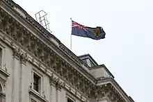 Le pavillon maritime adopte le même schéma, sauf que le fond du drapeau est rouge (Red Ensign).