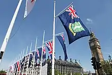 Avec d'autres drapeaux des territoires britanniques d'outre-mer à Parliament Square