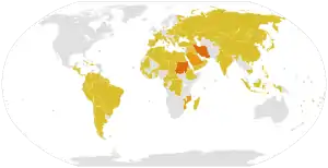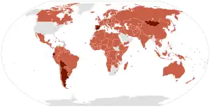 Cependant, les citoyens ne peuvent généralement pas intenter de poursuites en utilisant le Pacte, mais ne peuvent le faire qu'en vertu du droit national. Si un pays n'adopte pas de telles lois, un citoyen n'a aucun recours, même si l'État a violé le pacte. La mise en œuvre du Pacte est suivie par le Comité des droits économiques, sociaux et culturels[42]. Au total, 160 pays ont ratifié le Pacte. 32 autres pays n'ont pas ratifié le pacte, bien que 7 d'entre eux l'aient signé[3].