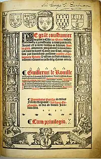 - Guillaume Le Rouillé, Le Grant Coustumier du pays & duché de Normendie : tres utile & profitable a tous practiciens, F. Regnault, (lire en ligne)