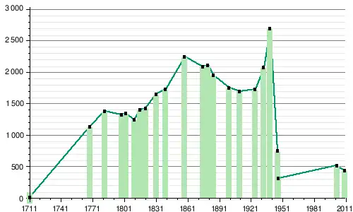 Entre 1709 et 1711, une épidémie de peste toucha la ville, tuant 543 habitants, dont 170 habitants pour le pire mois d'octobre 1710. À la suite de l'épidémie, seuls 11 habitants survécurent, sans compter certains habitants qui avaient pu fuir à temps.