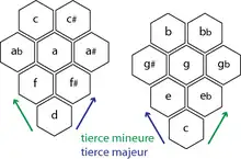 À partir de la version diatonique, si l'on oriente les tierces avec des angles différents selon que la tierce est majeure ou mineure, symétriquement pour chaque main, on obtient la version chromatique.