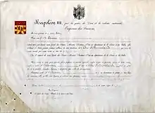 Lettres patentes du 17 septembre 1864 conférant le titre de duc d'Auerstaedt à Léopold Davout.