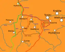 Lors du premier partage de la Pologne en 1772, l'Autriche annexe les duchés d'Oświęcim et de Zator ainsi qu'une partie de la Petite-Pologne à l'exception de la ville de Cracovie. Il rejoint le nouvellement créé Royaume de Galicie et de Lodomérie, partie intégrante de l'empire autrichien.