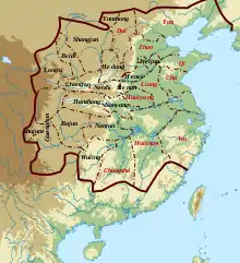 Gaozu avait repris des Qin la division du territoire en commanderies (jun) dont les gouverneurs étaient désignés par le pouvoir impérial et dont la rétribution était équivalente à celle d'un ministre de l’administration centrale[14]. Ils devaient rendre des rapports réguliers sur leur situation, mais avait jugé bon pour s’attacher les fidélités de distribuer des fiefs (guo, « pays » ou « royaumes ») à des princes (wang, terme désignant les rois dans l'Antiquité) anciens alliés ou membres du clan Liu, qui pouvaient transmettre cette fonction à leur successeur suivant un principe dynastique. Ils étaient situés dans la partie orientale de l'empire. C'était une manière de composer avec les autonomies provinciales, qui conservaient le souvenir des royaumes annexés par les Qin à peine une vingtaine d'années avant la prise de pouvoir des Han, et étaient donc particulièrement vivaces, étant un facteur décisif dans l'effondrement des Qin. Sous les premiers empereurs Han, les princes prirent des libertés vis-à-vis du pouvoir central, allant jusqu’à promulguer leurs propres lois, faisant planer le spectre d'un retour des autonomies régionales susceptibles de mettre en péril l'unité de l'empire. Sans supprimer les royaumes, moyen de récompense utile, les empereurs Wendi, Jing di et Wudi les ramenèrent dans le giron de l’empire : leurs détenteurs furent obligés à venir à la capitale chaque année pour rendre compte de la situation de leur apanage et rendre hommage à l'empereur, perdirent le contrôle de la désignation des principaux fonctionnaires chargés de ces circonscriptions, et leur taille fut réduite[15]. La situation de ces pays était donc réalignée sur celle des provinces, et les Han évitèrent de sombrer de la même manière que les Qin en trouvant une « voie moyenne » entre une centralisation excessive et une trop grande autonomie provinciale risquant de conduire à l'éclatement de l'empire[16]. Sous les Han postérieurs, les royaumes furent supprimés.