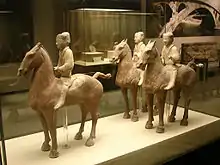 Les routes provenant de l'Asie intérieure amenaient depuis longtemps en Chine des blocs de jade, pierre considérée comme très prestigieuse dans ce pays, et très utilisée dans l'art funéraire. La nouveauté fut l'introduction plus abondante de chevaux depuis les contrées d'Occident. On se préoccupa de plus en plus d'importer massivement — quel qu'en fût le prix — une race plus élancée, les coursiers indispensables pour protéger les frontières du nord — au contact des Xiongnu — et de l'ouest — les routes de la soie — contre des populations de cavaliers dont la pression se fit de plus en plus pressante avec le temps, et aussi pour relier rapidement le vaste territoire de l'empire unifié. Pendant quelques décennies les routes de la soie furent ouvertes et avec l'accès aux oasis et le Ferghana, les Han se procurèrent les chevaux « aux sueurs de sang » (c'est-à-dire avec une robe tachetée de roux) nécessaires à la remonte sur de longues distances.
