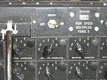 - Multiplicateurs 1, 2 et 3. Les multiplicateurs réquisitionnent et pilotent les accumulateurs adjacents 9, 10, 11, et 13 pour leur fonctionnement, avec un mode de fonctionnement similaire à celui du diviseur-extracteur.