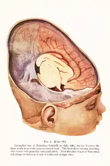- (en) Eardley Holland, « On Cranial Stress in the Fœtus during Labour and on the Effects of Excessive Stress on the Intracranial Contents; with an Analysis of Eighty-One Cases of Torn Tentorium Cerebelli and Subdural Cerebral Hæmorrhage. », The Transactions of the Edinburg Obstetrical Society, (PMCID PMC5424138)